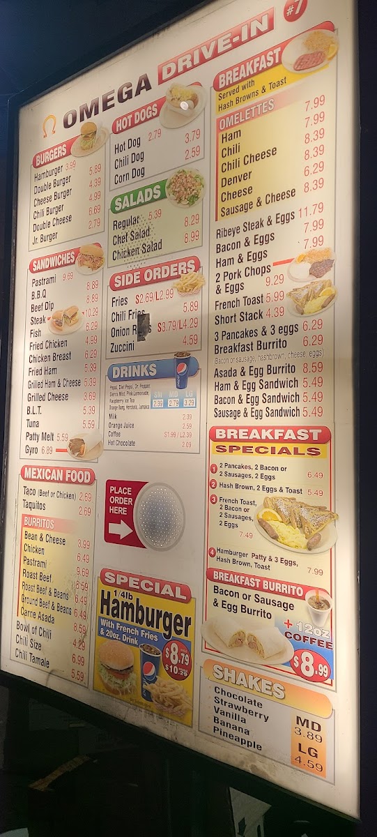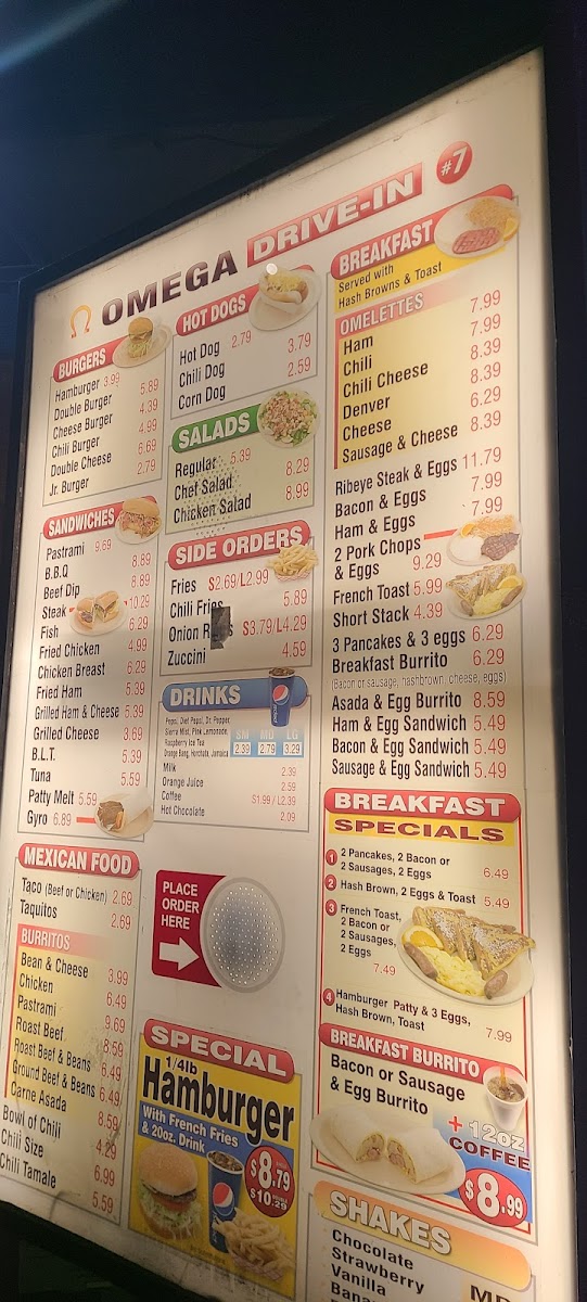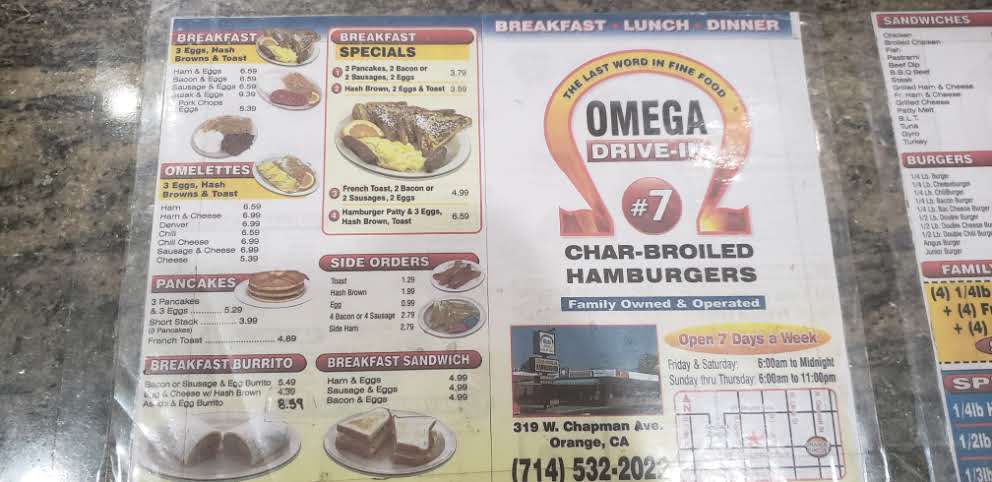 Omega Drive-In Menu
